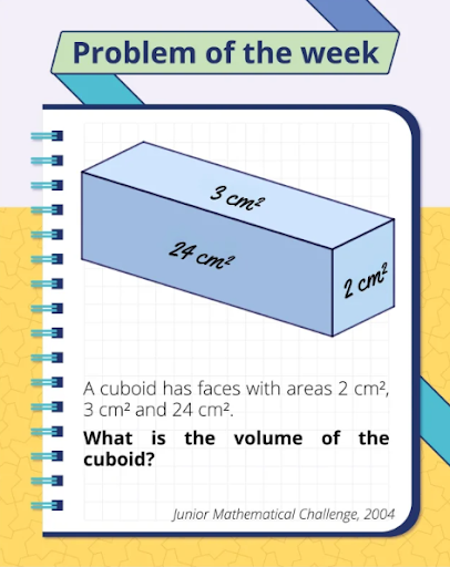 Last edition’s puzzle comes courtesy of UK Maths Trust who are selecting some of their UK Maths Challenge Questions for their problem of the week: https://ukmt.org.uk/new-problem-of-the-week